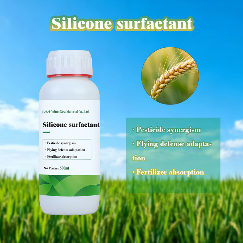 Organosilikónové povrchovo aktívne látky sú triedou povrchovo aktívnych látok, ktoré kombinujú vlastnosti organických molekúl s vlastnosťami silikónov. Tieto povrchovo aktívne látky sa široko používajú v rôznych formuláciách, najmä v poľnohospodárstve, kde sa začleňujú do pesticídov, herbicídov a hnojív na zlepšenie ich účinnosti. Hebei Guituo New Material Co., Ltd. vyrába rôzne aditíva na báze organokremičitých látok, ktoré sú určené na zlepšenie zmáčacích a disperzných vlastností poľnohospodárskych prípravkov. Tieto povrchovo aktívne látky zohrávajú kľúčovú úlohu pri zabezpečovaní lepšieho pokrytia a účinnosti agrochemických produktov, čím zlepšujú celkovú účinnosť aplikácie.